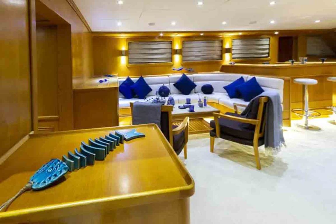 | The Gulet Babylon is a 36-metre deluxe gulet, launched in 2013 and refitted in 2022 to provide high-class comfort. The vessel has five cabins, including one VIP cabin, one master cabin and three double cabins, with a maximum occupancy of 10 guests. Her 8.30-meter beam ensures spacious interiors and impressive outdoor living areas. The deck boasts ample sunbathing space, shaded lounging areas and alfresco dining facilities. Inside, the elegant saloon features a dining area, comfortable seating, and a fully-equipped galley. Babylon offers a comprehensive range of water sports equipment, including 100 HP Yamaha tenders, stand-up paddleboards, water skis, wakeboards, ringos, canoes, snorkelling gear and fishing equipment. She is powered by two 440 HP Man engines and supported by 45 + 33 kVA generators, enabling a smooth cruising speed of 12 knots. Air conditioning is available for 18 hours per day, with 12V/24V/220V electricity. Gulet Babylon is the ideal choice for groups seeking a luxurious blue cruise with a focus on high standards, comfort, and a wide range of water activities. |