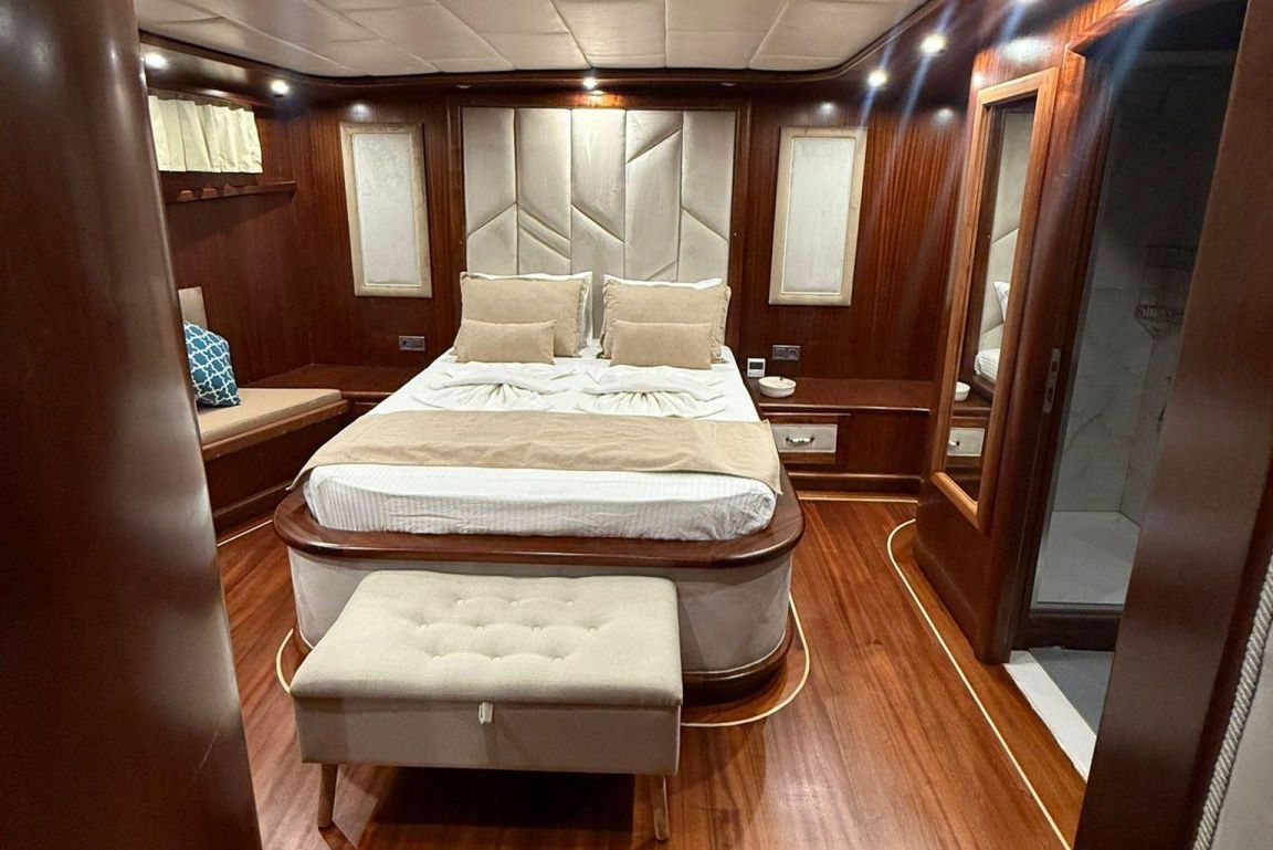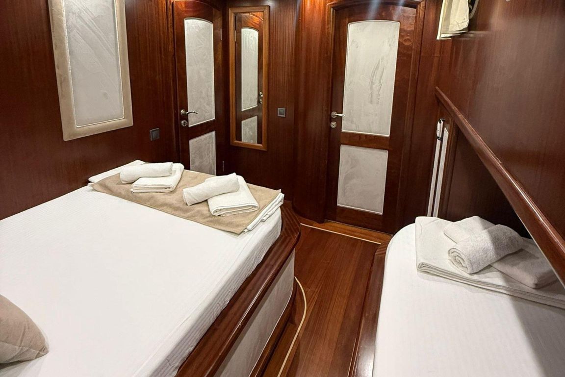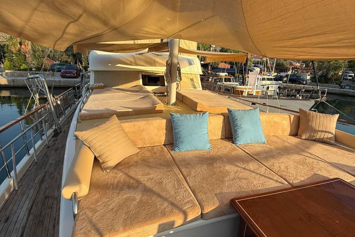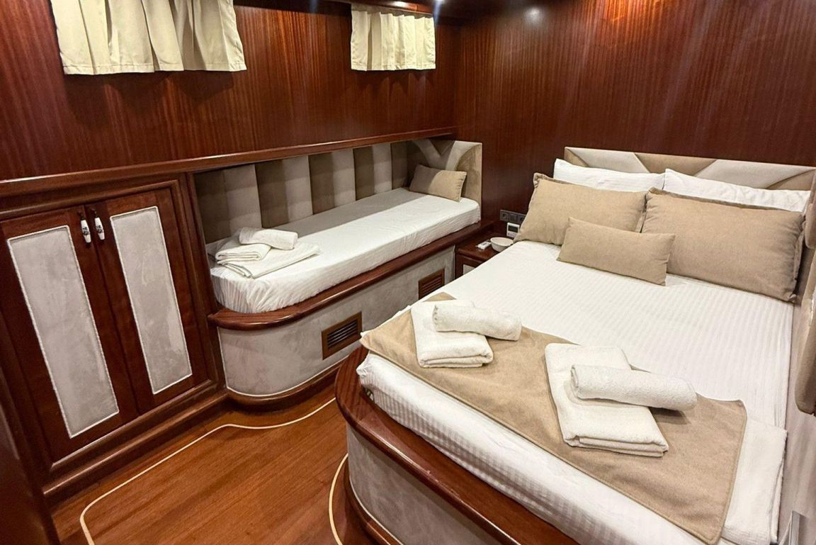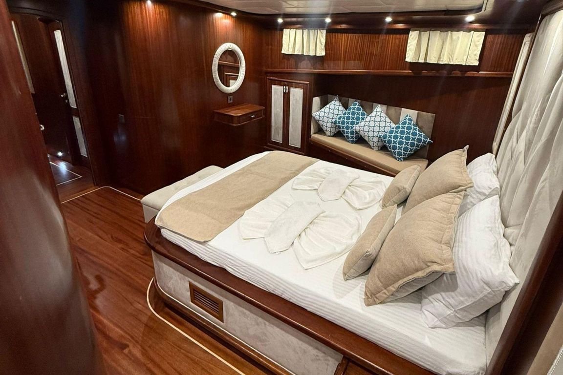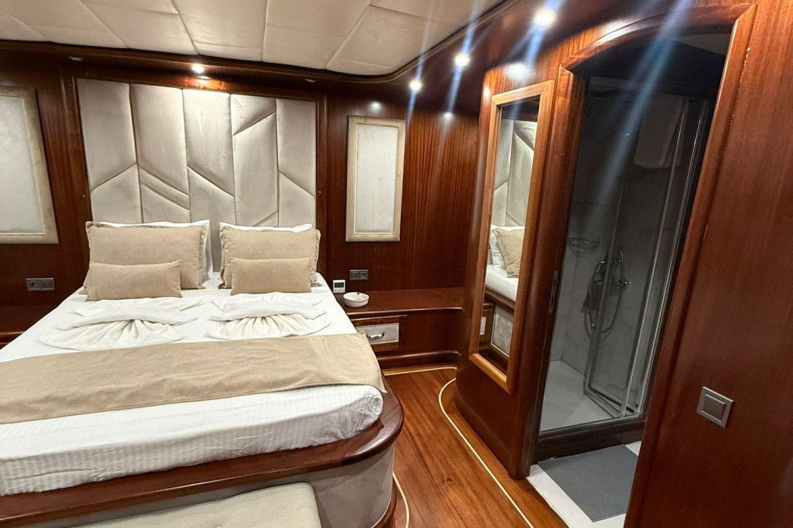 Mare Magico is a 24-meter luxury gulet designed to offer an exceptional private gulet rental experience along the Turkish coast. With 5 cabins (2 Master, 1 Double and 2 Triple) accommodating up to 12 guests, it is an ideal choice for families and groups looking for comfort, space and a premium Blue Cruise Turkey holiday. Each cabin features air-conditioning, private bathrooms and elegant decor, ensuring a relaxing stay throughout your journey. The interior of Mare Magico includes a spacious salon with comfortable seating areas, perfect for unwinding during the day. The exterior living spaces are equally impressive: the aft deck offers a large dining area and soft seating, while the foredeck provides sunbathing mattresses and a cozy lounge area, ideal for enjoying the sun and breathtaking coastal views. For guests who enjoy an active yacht charter Turkey experience, Mare Magico offers paddleboard, canoe and snorkeling equipment, allowing you to explore crystal-clear bays and hidden coves. The professional and friendly crew of four ensures high-quality service, preparing delicious meals, assisting with daily activities and taking care of every detail during your voyage. Departing from the Bozburun and Marmaris region, Mare Magico allows you to discover some of the most beautiful bays of Hisaronu, Orhaniye, Selimiye and Datca. Combining modern comfort with the classic charm of a traditional gulet, Mare Magico is an excellent choice for travelers seeking a stylish, peaceful and memorable luxury gulet charter Bodrum or Southwest Turkey experience.
