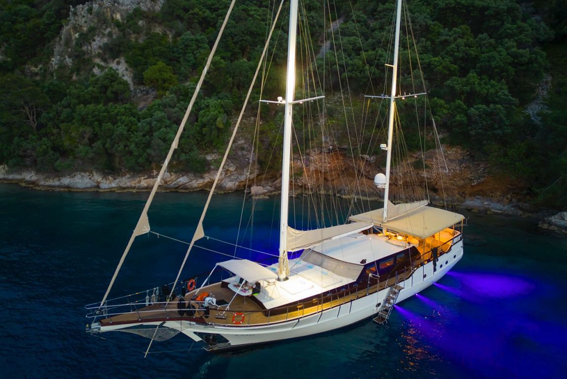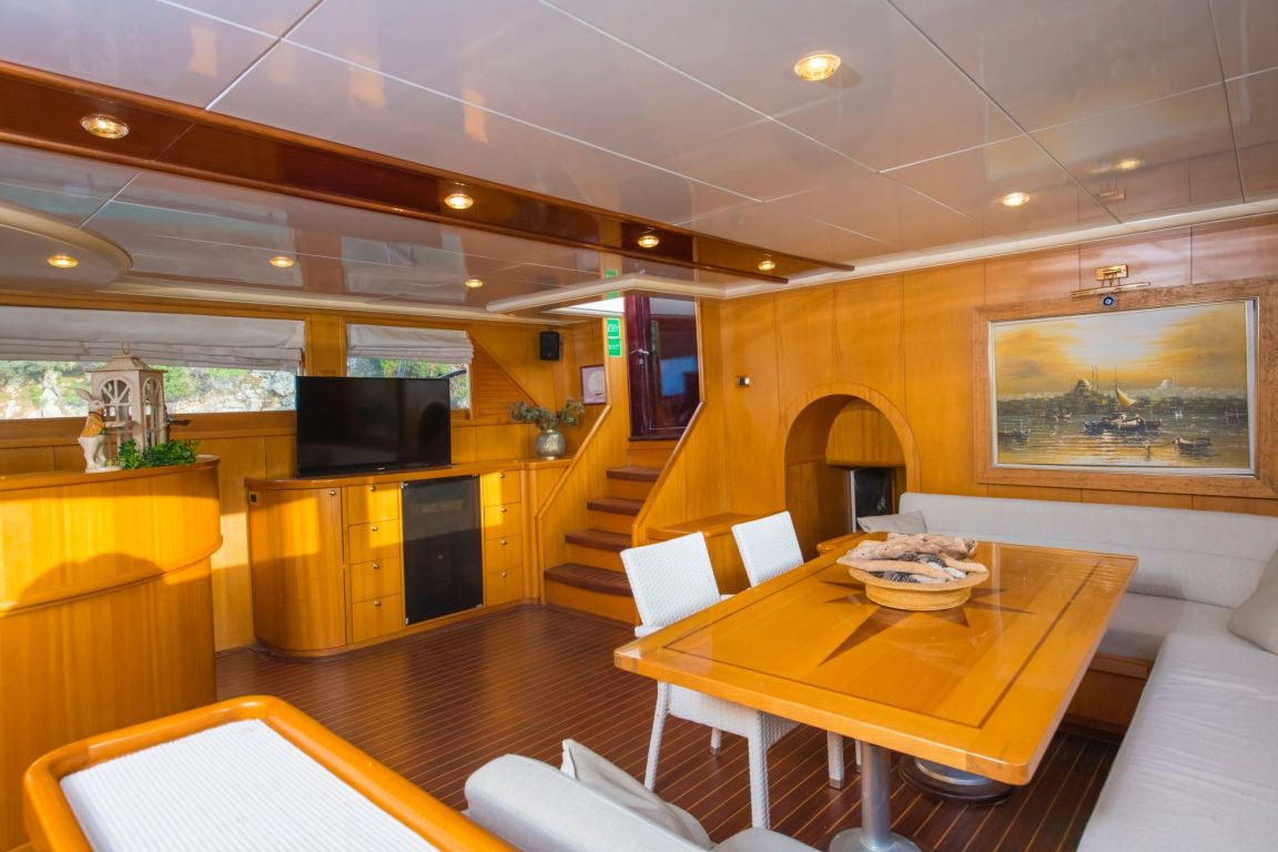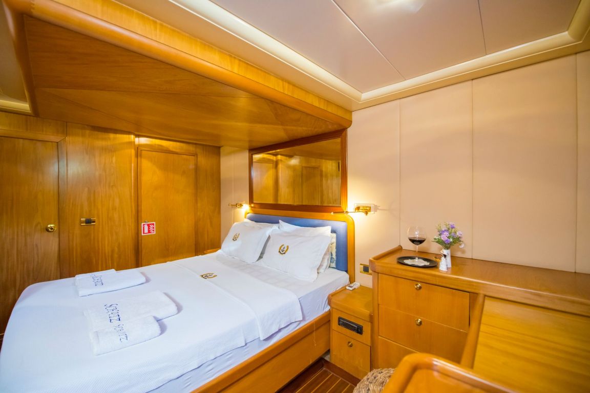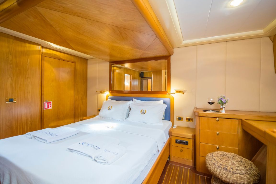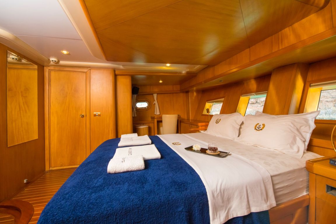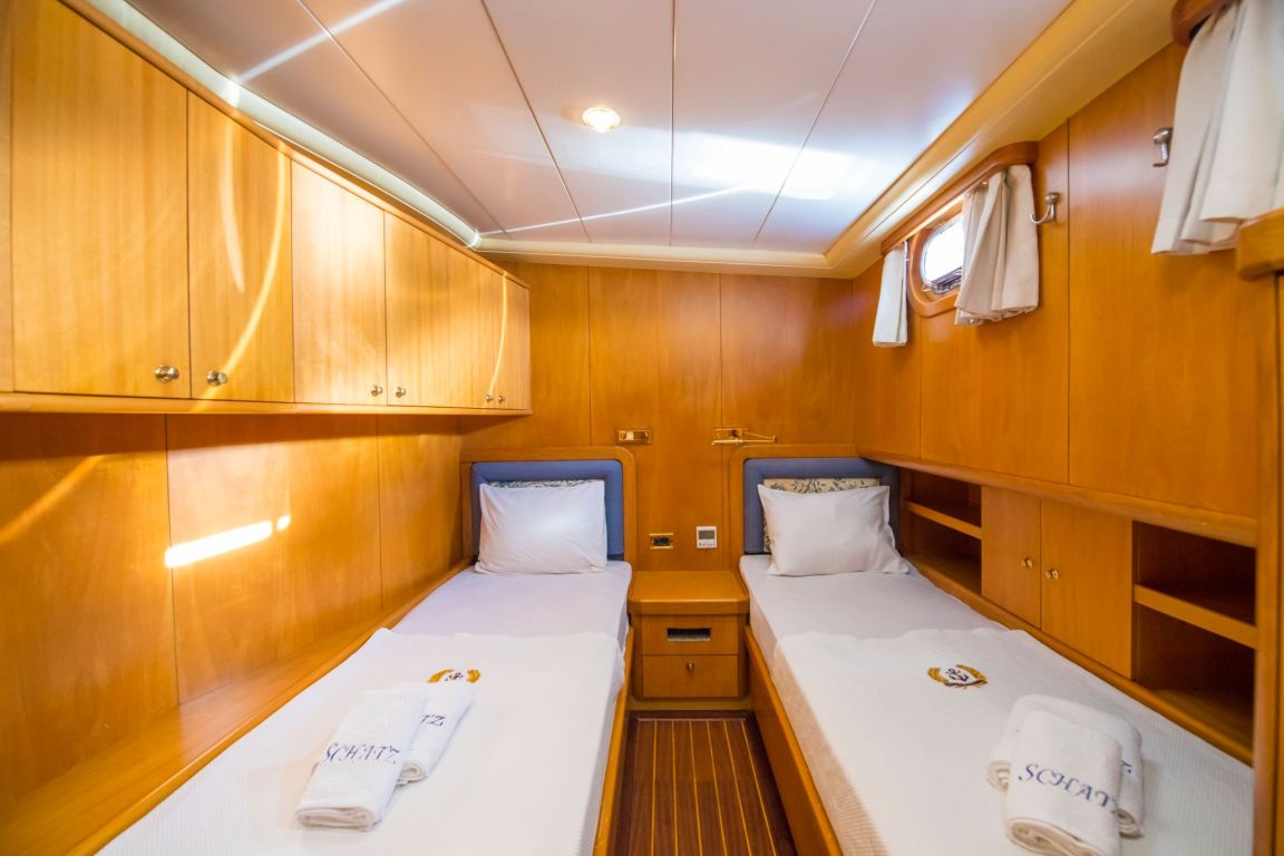 A professional and experienced crew of 5 provides high-quality service throughout your journey, taking care of navigation, daily service and delicious meals prepared on board. Cruising comfortably along the breathtaking coasts of Bodrum, Gocek, Marmaris and Fethiye, Mein Schatz combines comfort, space and classic elegance, making it a perfect choice for a stylish and memorable luxury gulet charter Turkey experience.