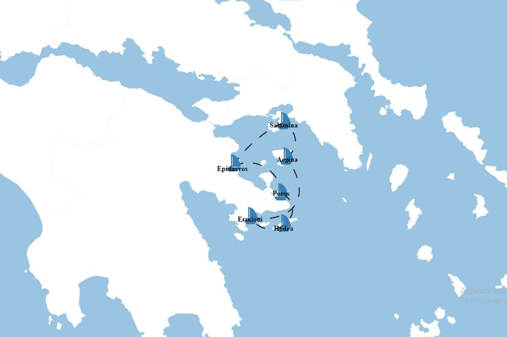 ROUTE: Greek Islands - Salamina, Epidaurus, Poros, Hydra, Ermioni, Aegina, Salamina, Athens