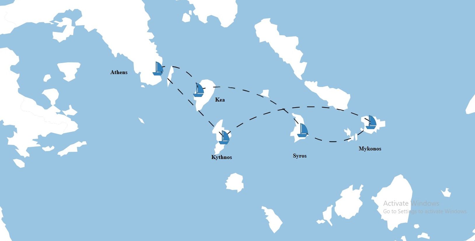 ROUTE: Greek Islands - Salamina, Kea, Syros, Mykonos, Kythnos