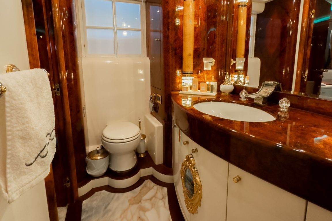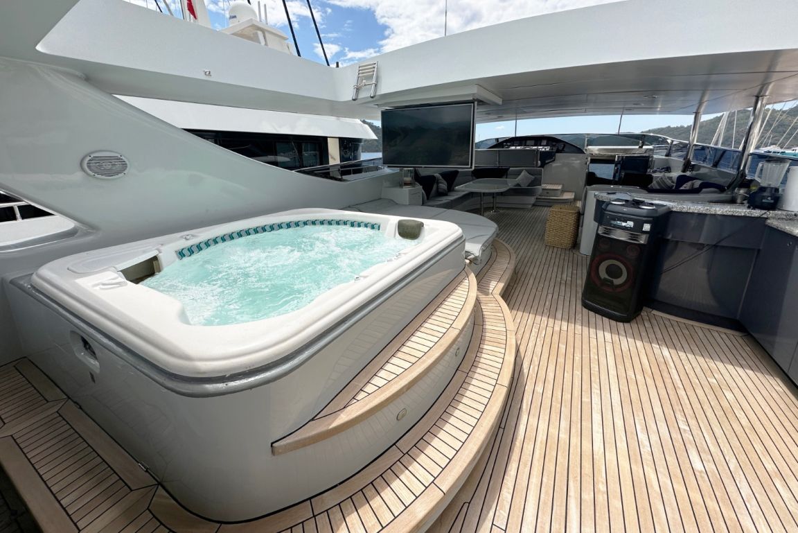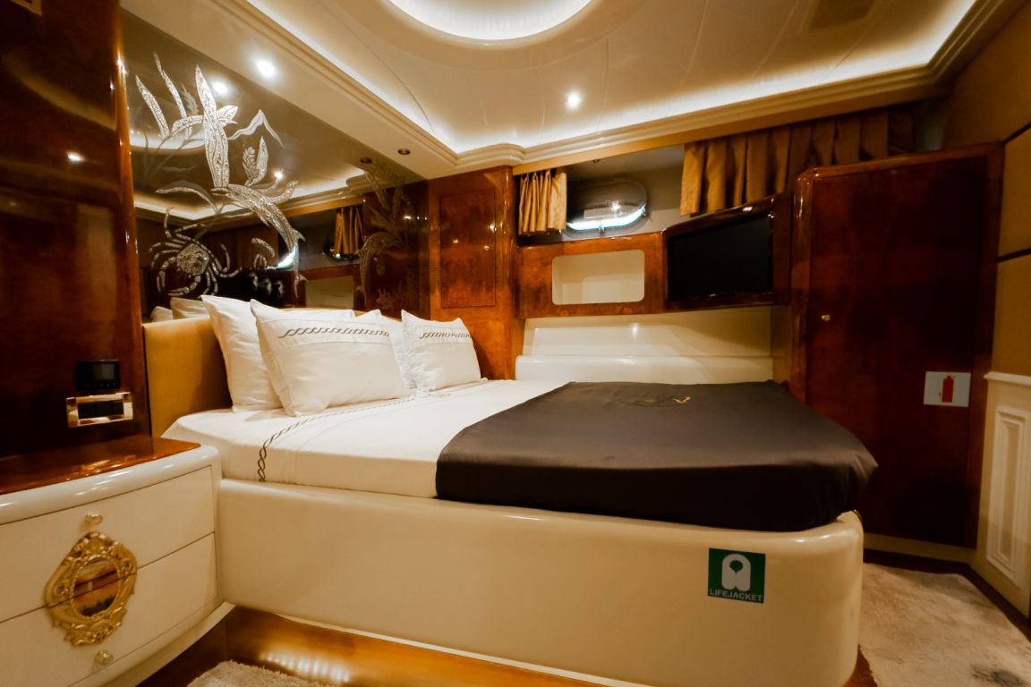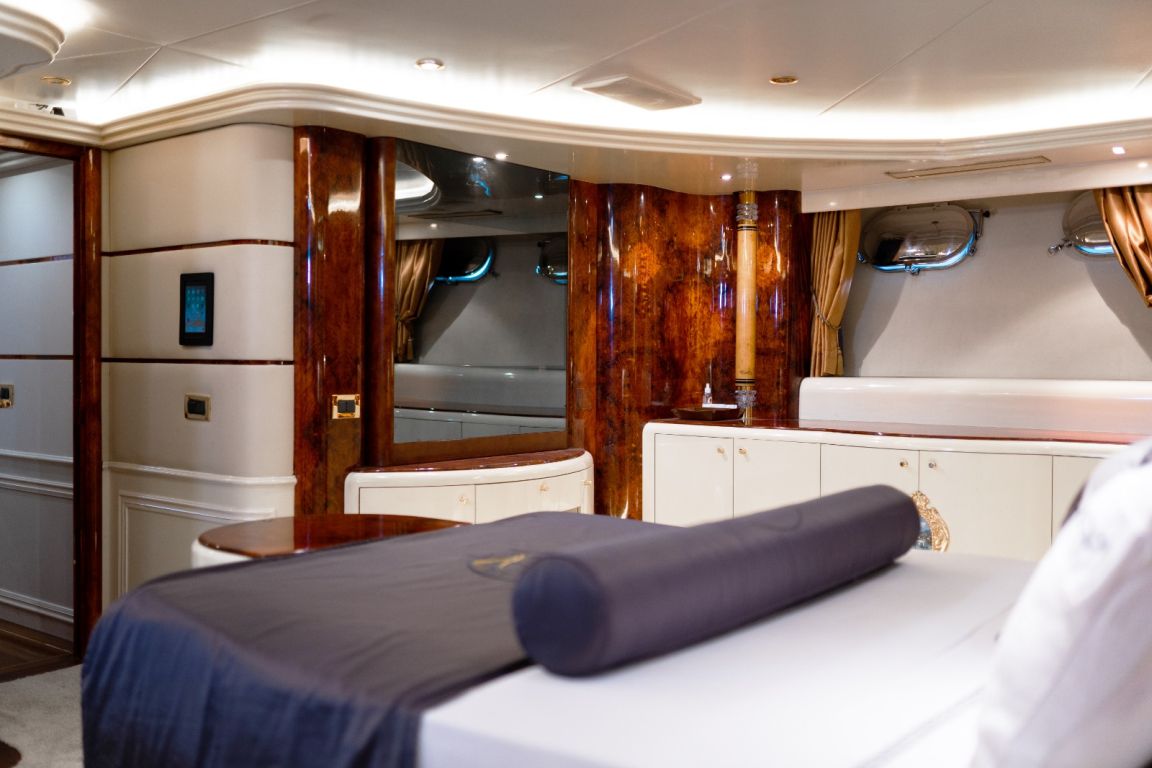Up to 12 Guest; 1 VIP, 1 Master, 3 Double, 1 Twin Cabins. Master Cabin: Located on the lower deck, the spacious master cabin features a king size bed, Apple TV, internet access and Wi-Fi, a work/vanity desk and a cinema sound system. The cabin also includes RGB ambient lighting, air conditioning, jacuzzi, WC and a separate shower cabin. VIP Cabin: The VIP cabin is located on the main deck and offers a king size bed, Apple TV, internet access and Wi-Fi, a work/vanity desk and cinema sound system. Guests can enjoy RGB ambient lighting, air conditioning, jacuzzi, WC and a private shower cabin. Double Cabins (3): Three comfortable double cabins are located on the lower deck. Each cabin features a queen size bed, Apple TV, internet access and Wi-Fi, WC, shower cabin or bathtub and air conditioning. Twin Cabin: The twin cabin located on the lower deck offers two single beds, Apple TV, internet access and Wi-Fi, WC, shower cabin and air conditioning. |
