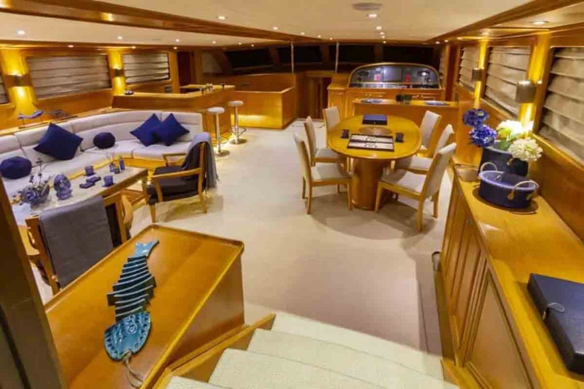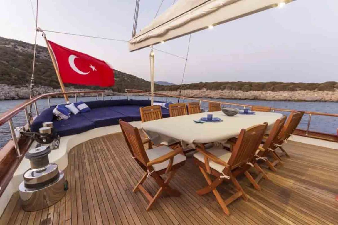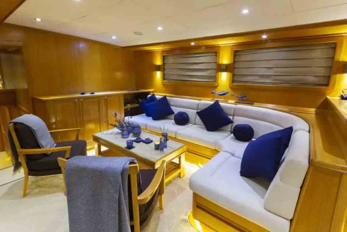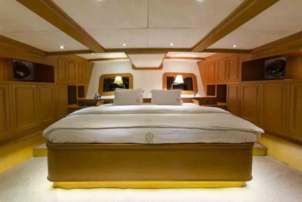 | The Gulet Babylon is a 36-metre deluxe gulet, launched in 2013 and refitted in 2022 to provide high-class comfort. The vessel has five cabins, including one VIP cabin, one master cabin and three double cabins, with a maximum occupancy of 10 guests. Her 8.30-meter beam ensures spacious interiors and impressive outdoor living areas. The deck boasts ample sunbathing space, shaded lounging areas and alfresco dining facilities. Inside, the elegant saloon features a dining area, comfortable seating, and a fully-equipped galley. Babylon offers a comprehensive range of water sports equipment, including 100 HP Yamaha tenders, stand-up paddleboards, water skis, wakeboards, ringos, canoes, snorkelling gear and fishing equipment. She is powered by two 440 HP Man engines and supported by 45 + 33 kVA generators, enabling a smooth cruising speed of 12 knots. Air conditioning is available for 18 hours per day, with 12V/24V/220V electricity. Gulet Babylon is the ideal choice for groups seeking a luxurious blue cruise with a focus on high standards, comfort, and a wide range of water activities. |