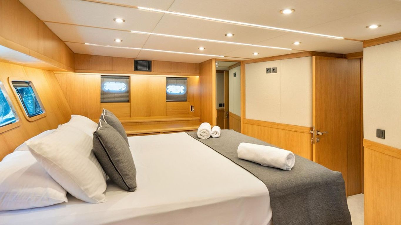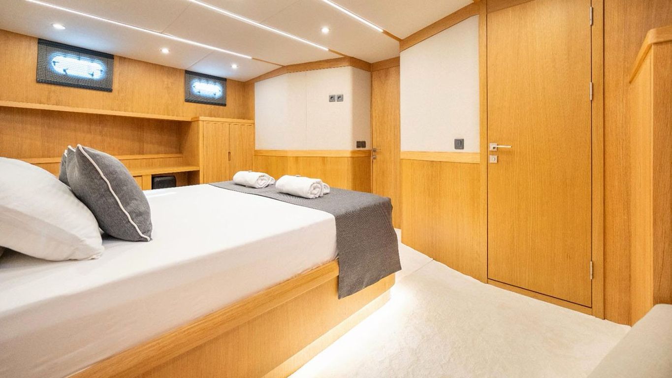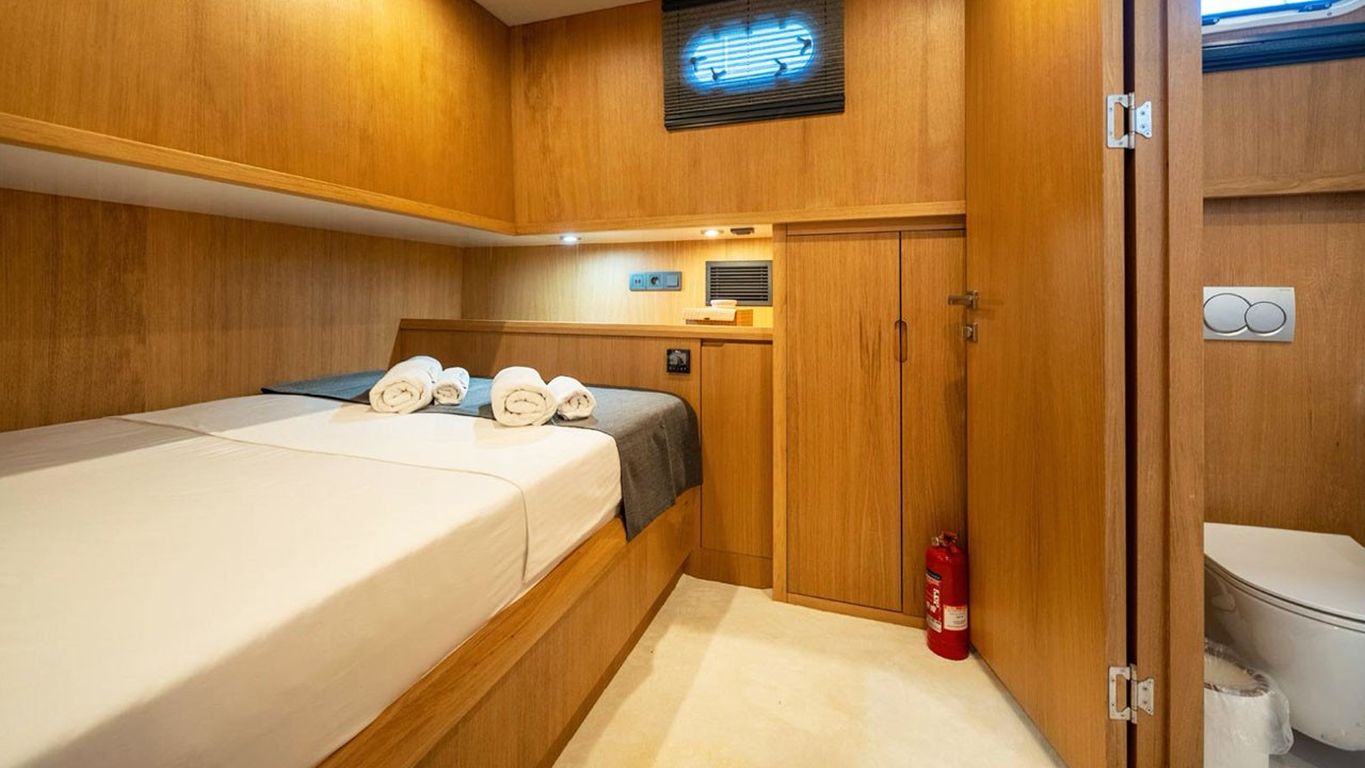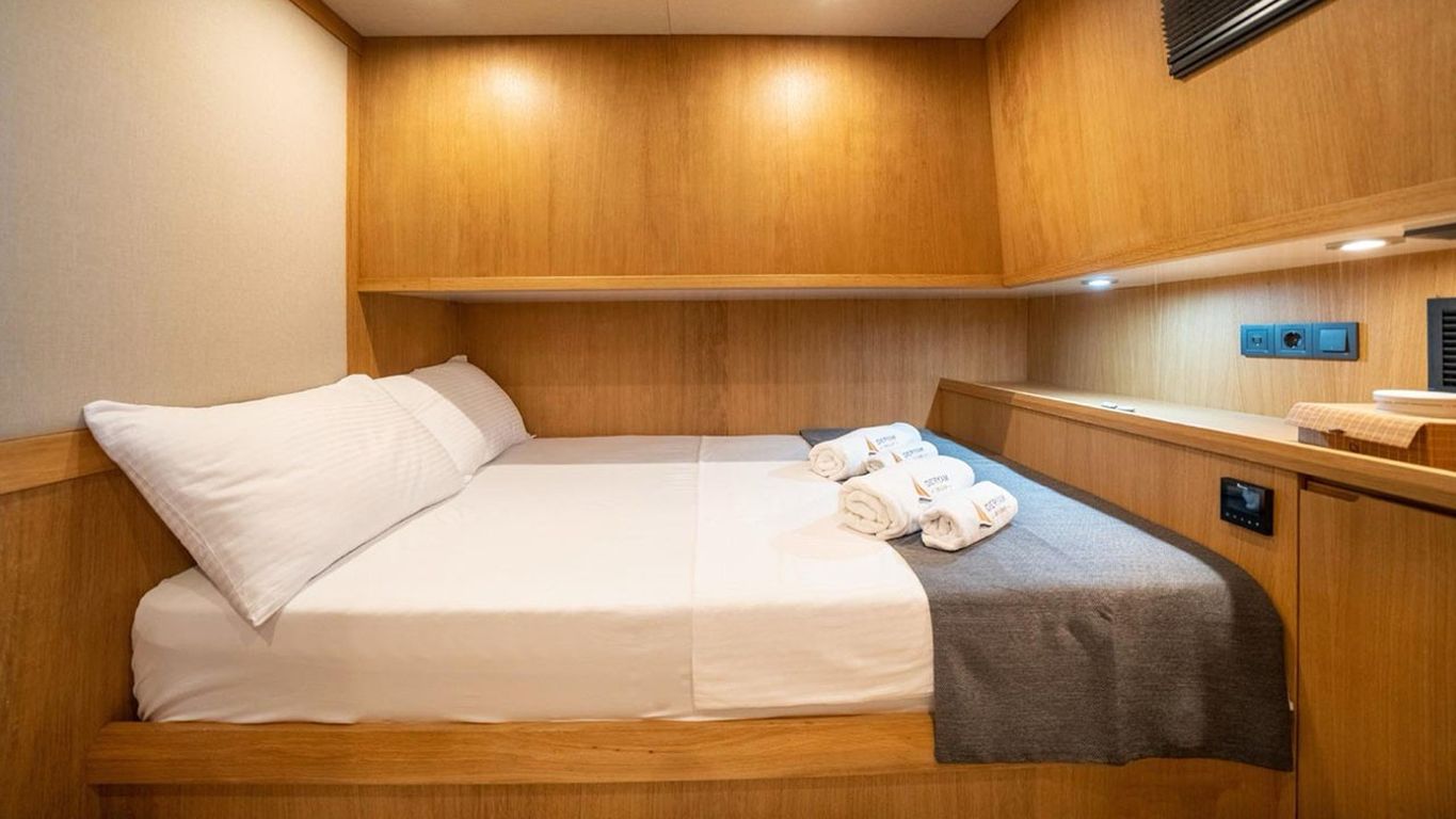 The Gulet Deryam Deluxe, a brand-new 23.95-metre luxury gulet, was launched in 2023 and combines fresh design and modern comfort. With five cabins, including two master cabins, one double cabin and two twin cabins, she can accommodate up to 10 guests in comfort. The 6.50-metre beam ensures airy interiors and expansive outdoor areas, making it an ideal choice for those seeking a spacious and airy living environment.