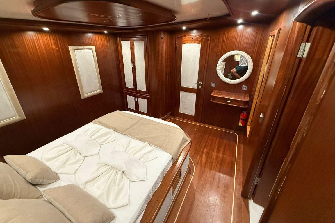 Mare Magico is a 24-meter luxury gulet designed to offer an exceptional private gulet rental experience along the Turkish coast. With 5 cabins (2 Master, 1 Double and 2 Triple) accommodating up to 12 guests, it is an ideal choice for families and groups looking for comfort, space and a premium Blue Cruise Turkey holiday. Each cabin features air-conditioning, private bathrooms and elegant decor, ensuring a relaxing stay throughout your journey. The interior of Mare Magico includes a spacious salon with comfortable seating areas, perfect for unwinding during the day. The exterior living spaces are equally impressive: the aft deck offers a large dining area and soft seating, while the foredeck provides sunbathing mattresses and a cozy lounge area, ideal for enjoying the sun and breathtaking coastal views. For guests who enjoy an active yacht charter Turkey experience, Mare Magico offers paddleboard, canoe and snorkeling equipment, allowing you to explore crystal-clear bays and hidden coves. The professional and friendly crew of four ensures high-quality service, preparing delicious meals, assisting with daily activities and taking care of every detail during your voyage. Departing from the Bozburun and Marmaris region, Mare Magico allows you to discover some of the most beautiful bays of Hisaronu, Orhaniye, Selimiye and Datca. Combining modern comfort with the classic charm of a traditional gulet, Mare Magico is an excellent choice for travelers seeking a stylish, peaceful and memorable luxury gulet charter Bodrum or Southwest Turkey experience.