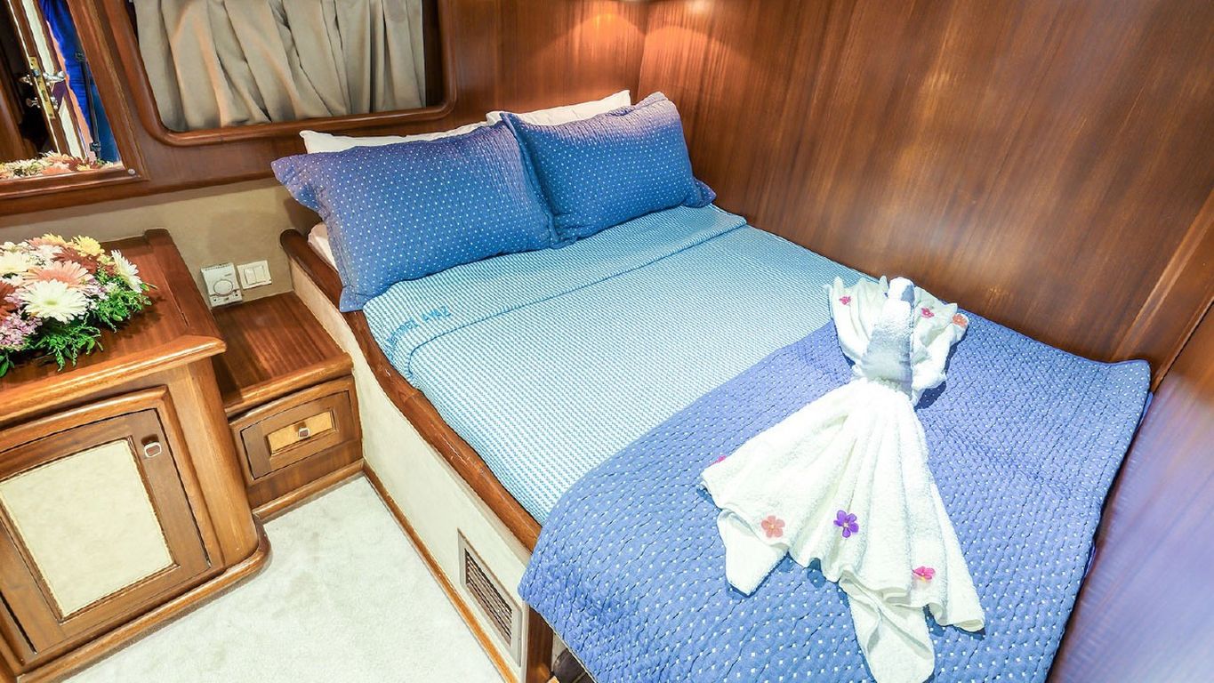 The vessel is powered by two 280 hp Delphin engines and supported by two 22.5 + 9 kVA generators, allowing it to cruise at a speed of 8 knots. Air conditioning is available for six hours per day and is supported by 12V/24V/220V electrical systems.