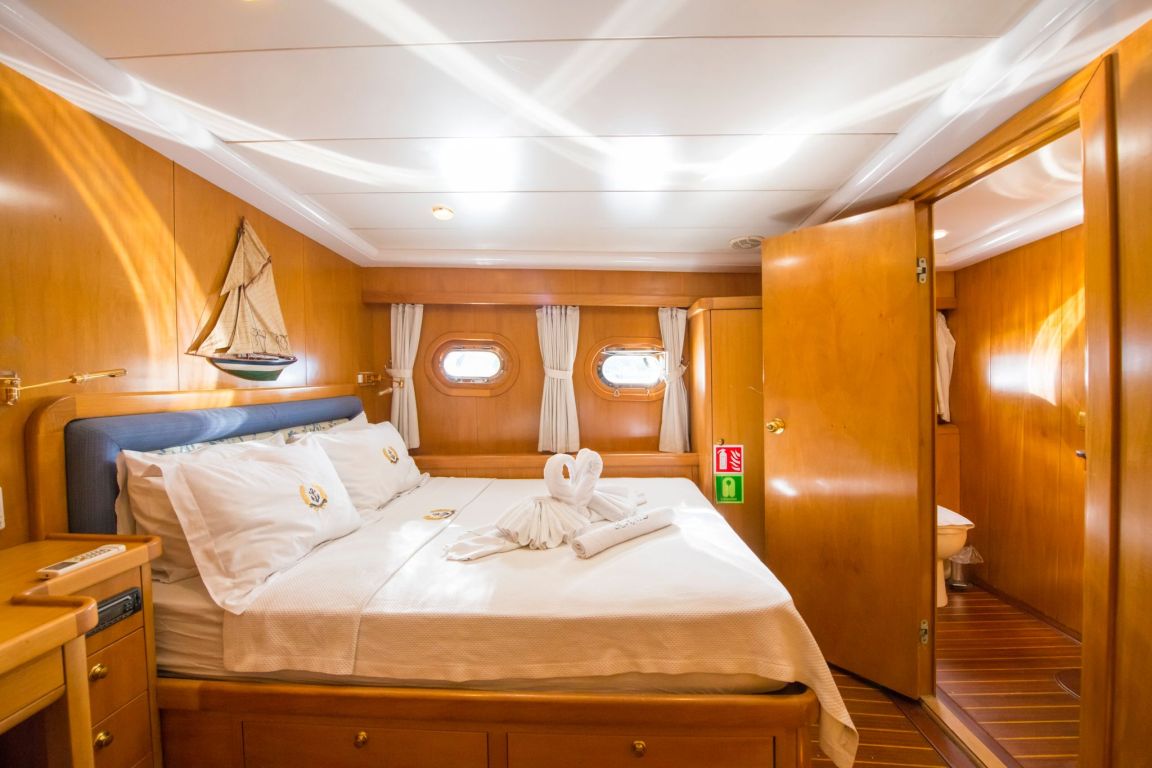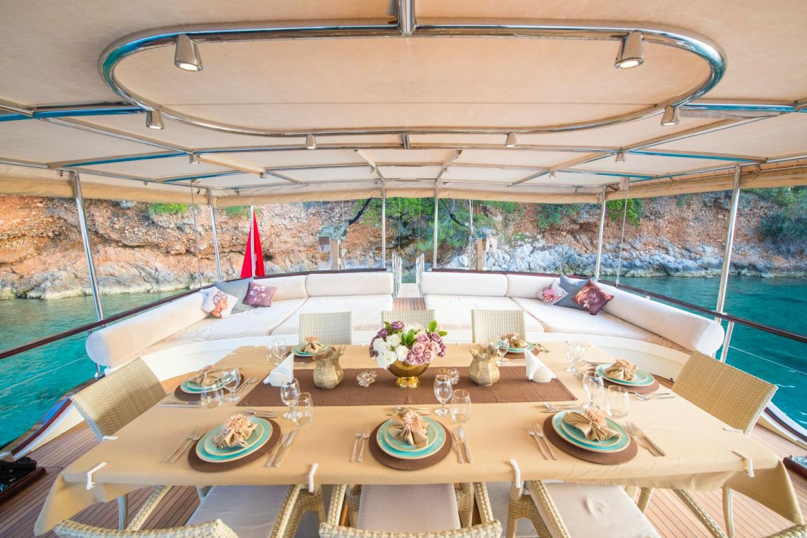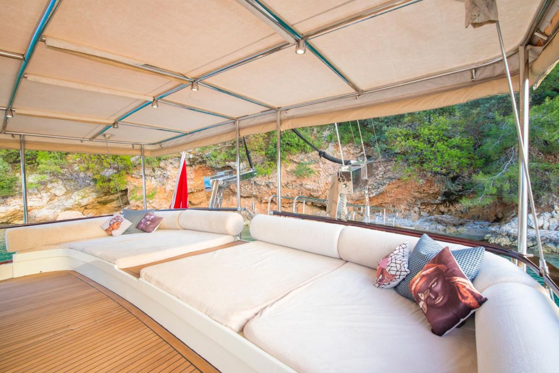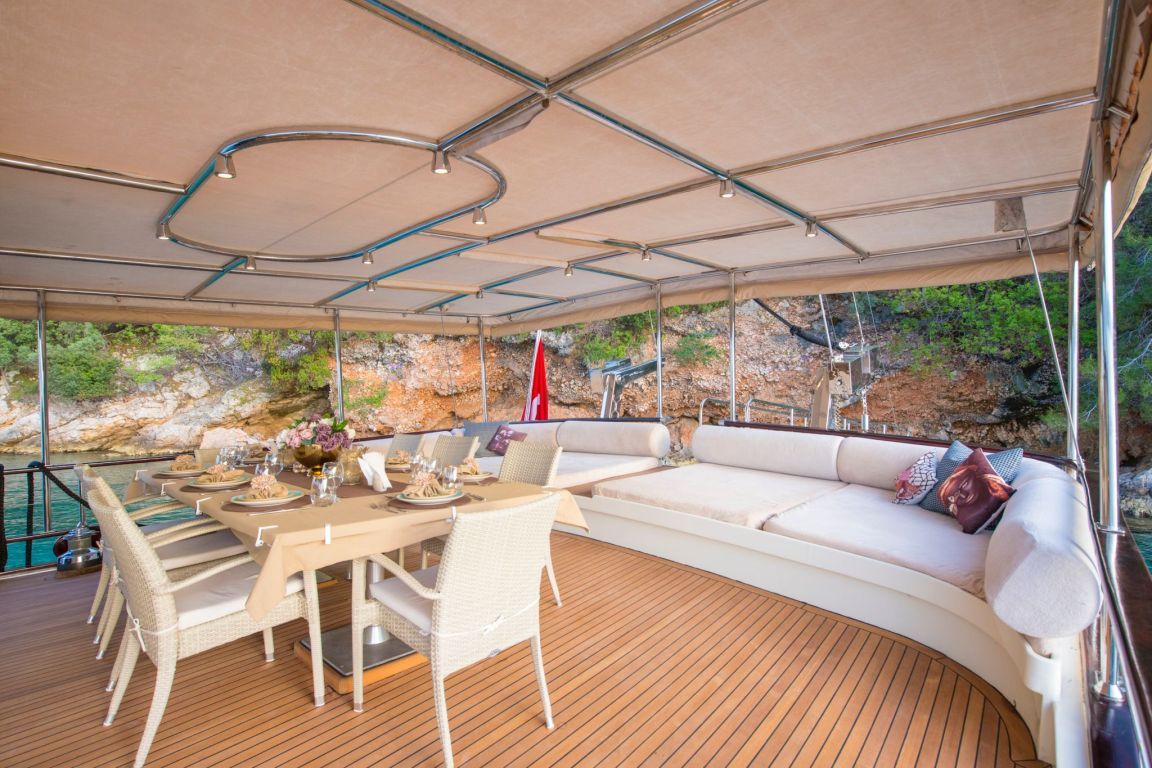 A professional and experienced crew of 5 provides high-quality service throughout your journey, taking care of navigation, daily service and delicious meals prepared on board. Cruising comfortably along the breathtaking coasts of Bodrum, Gocek, Marmaris and Fethiye, Mein Schatz combines comfort, space and classic elegance, making it a perfect choice for a stylish and memorable luxury gulet charter Turkey experience.