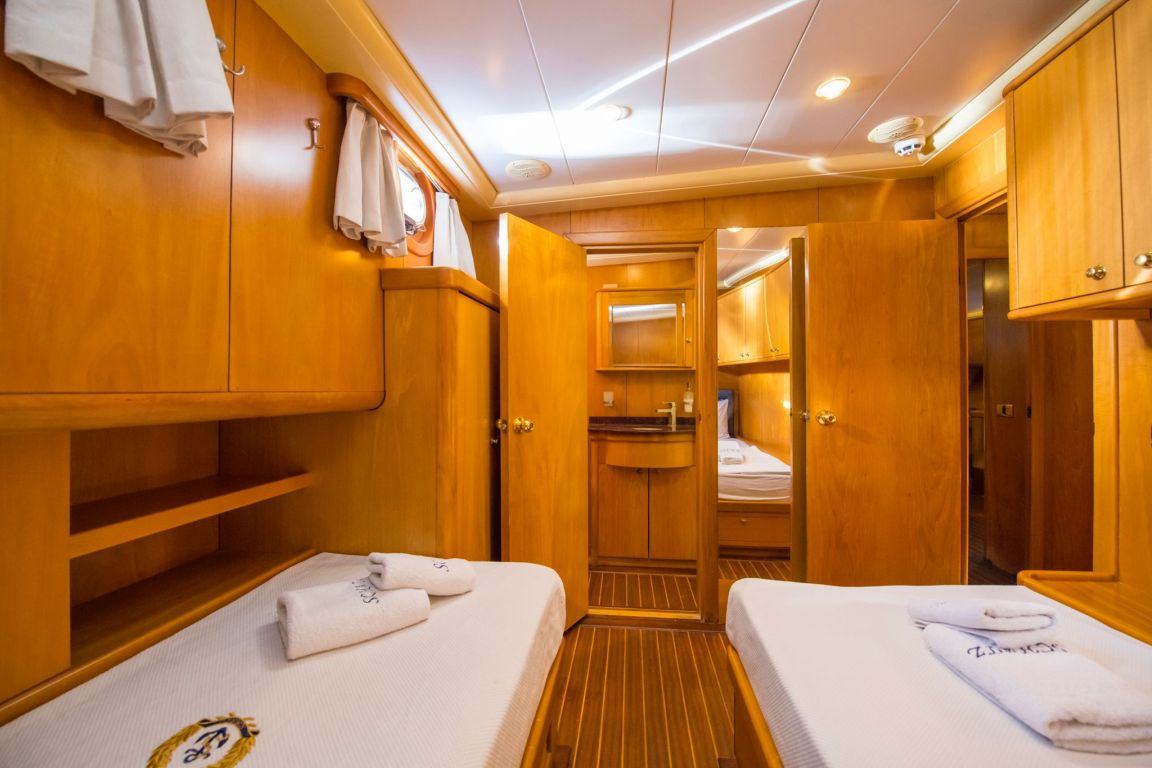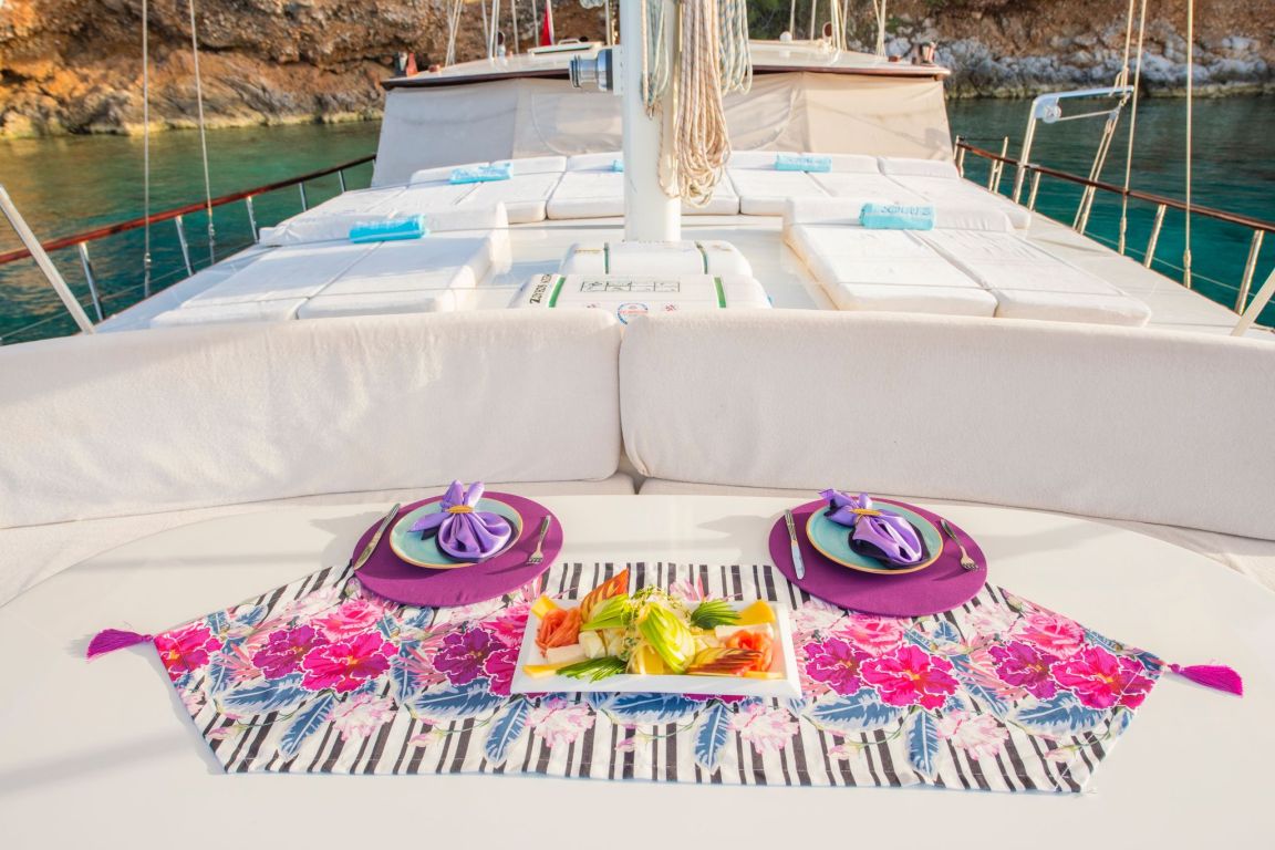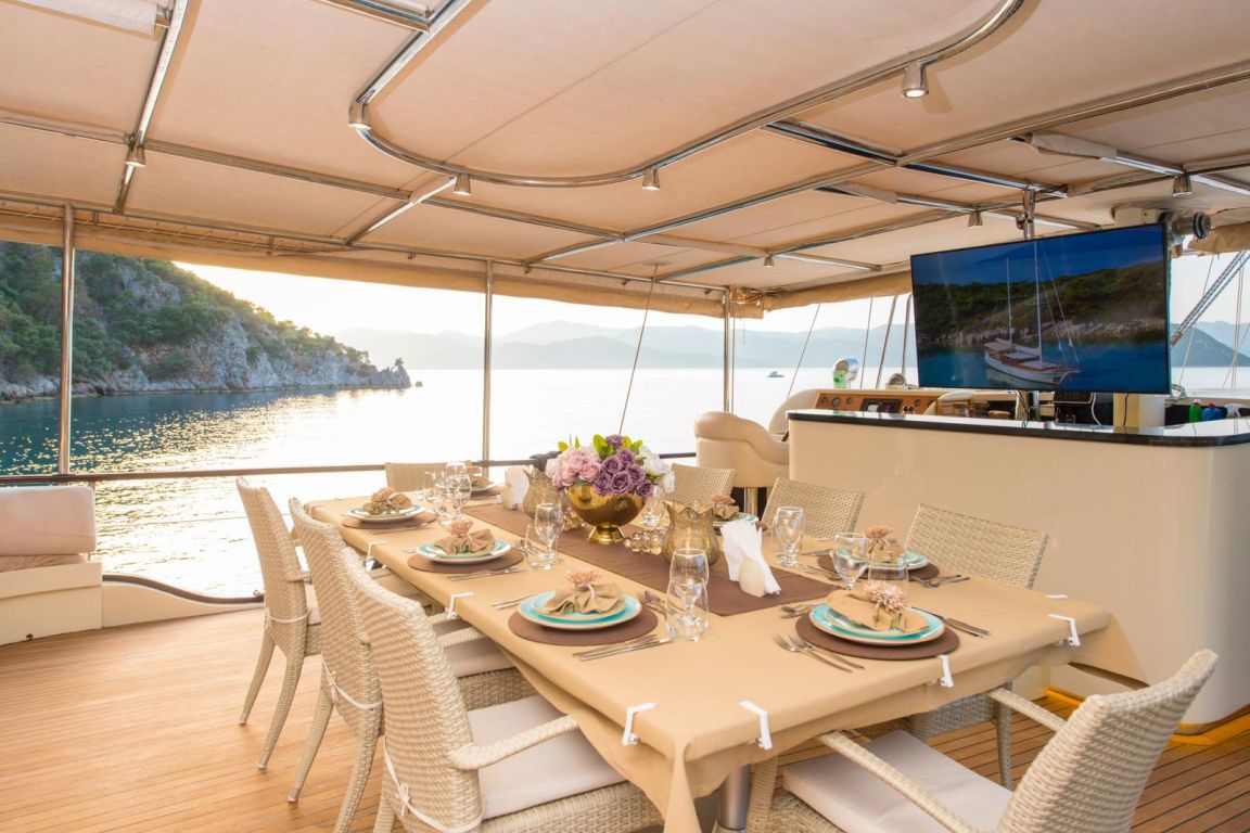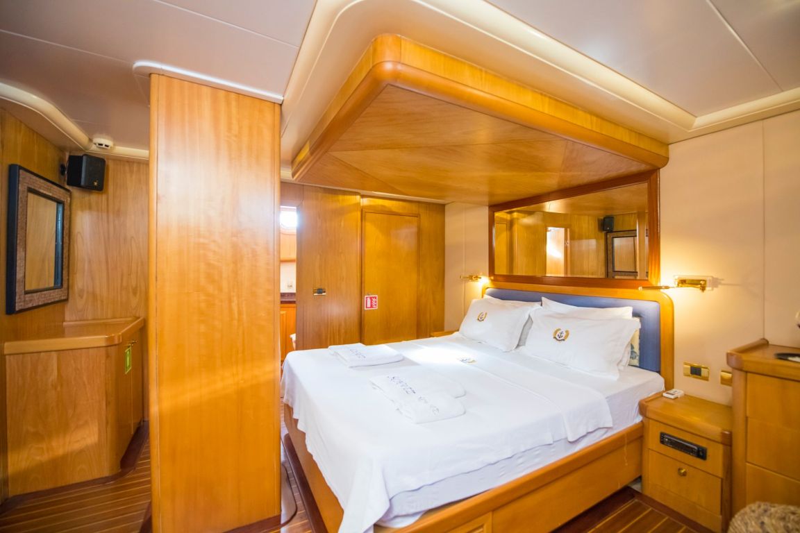A professional and experienced crew of 5 provides high-quality service throughout your journey, taking care of navigation, daily service and delicious meals prepared on board. Cruising comfortably along the breathtaking coasts of Bodrum, Gocek, Marmaris and Fethiye, Mein Schatz combines comfort, space and classic elegance, making it a perfect choice for a stylish and memorable luxury gulet charter Turkey experience.