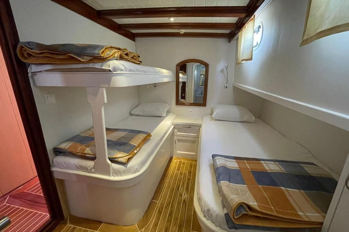 Pam is a comfortable and well-designed gulet offering a relaxing private gulet charter experience along the beautiful Turkish coastline. With a spacious layout and elegant design, this yacht is ideal for guests looking to enjoy a classic Blue Cruise Turkey holiday in comfort and style. Featuring multiple well-appointed cabins with air-conditioning and private bathrooms, Pam provides a pleasant and restful stay for families and small groups throughout the journey. The interior of Pam includes a cozy and functional salon with comfortable seating areas, perfect for relaxing during the day or spending time with your group. The outdoor living spaces are designed for maximum enjoyment at sea: the aft deck offers a dining table and shaded seating area for delicious meals, while the foredeck provides sunbathing mattresses where guests can unwind and enjoy the Mediterranean sun. For guests who prefer an active yacht charter Turkey experience, Pam offers various water toys such as canoe, snorkeling equipment and other fun activities, allowing you to explore crystal-clear bays and hidden coves. The yacht also features modern navigation systems and comfortable deck areas, ensuring both safety and enjoyment during your cruise. A professional and friendly crew is on board to provide high-quality service throughout your journey, taking care of navigation, daily service and freshly prepared meals. Cruising along the stunning coasts of Bodrum, Gocek, Fethiye and Marmaris, Pam combines comfort, simplicity and traditional gulet charm, making it a great choice for travelers seeking a peaceful and enjoyable luxury gulet charter Turkey experience. |