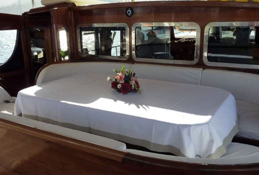 Bibi Aysegul gulet was produced in 1997 and was renovated according to new technologies in 2012 and 2014. It offers you a blue voyage tour with a length of 28 meters. There are 3 double and 3 twin cabins, each with its own shower, WC and air conditioning. You can plan a pleasant and entertaining blue cruise holiday with our Bibi Aysegul boat on any of the Bodrum, Gocek, Marmaris, Fethiye routes. Our Bibi Aysegul boat has separate dining areas on the deck and in the lounge, a fully equipped kitchen, an American bar, and separate living areas for the crew. There are sunbathing areas on the deck where 12 people can easily sunbathe.