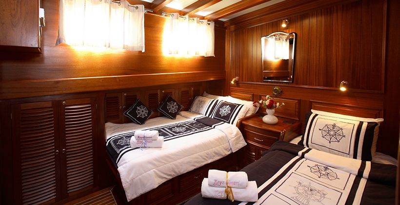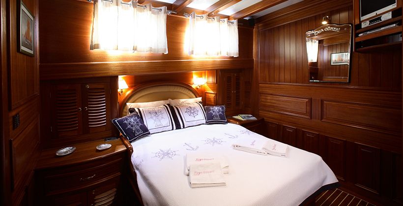 There are canoes, snorkels, masks, fins and simple fishing gear to make the time you spend at sea more enjoyable, and to make the time you spend on the deck more fun, there is a rummy set, backgammon, playing cards, DVD player, music system and air conditioning. Our staff on the boat, with their experience, will be at your service for food preparation, service, daily cleaning and all matters you may need during the blue voyage. Its captain and crew, who are experienced in sailing, will sail when the weather permits and you will be able to experience the pleasure of a sailing blue cruise in the Aegean. To experience an economical and enjoyable blue tour in Turkish territorial waters, we invite you to a blue voyage by sailing with our Kaya Guneri 4 gulet.