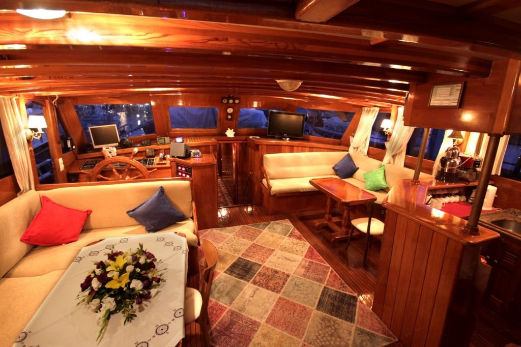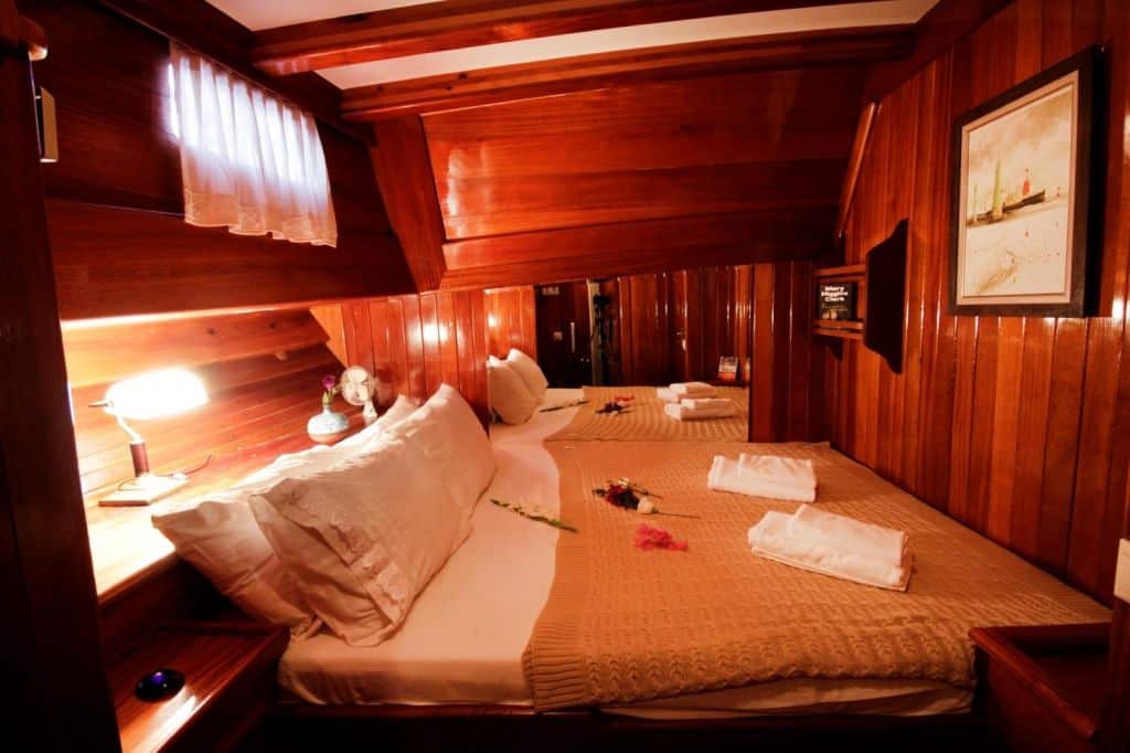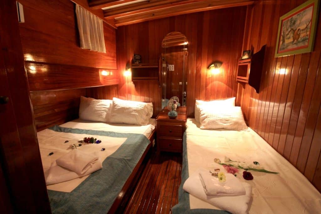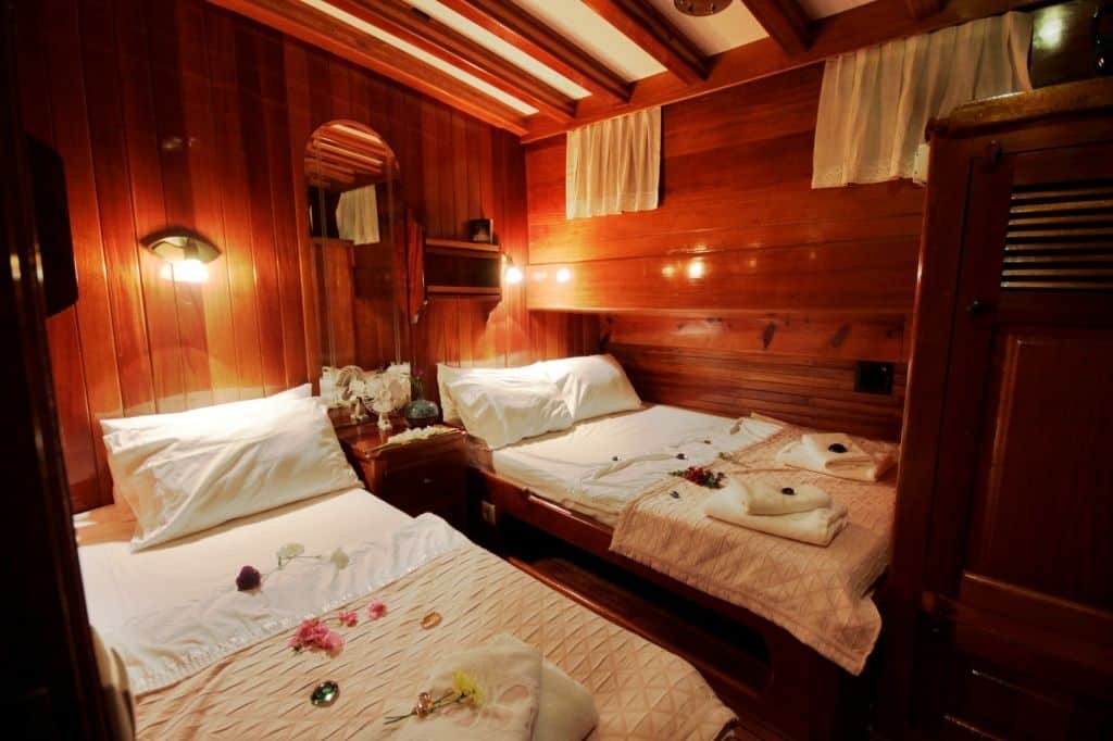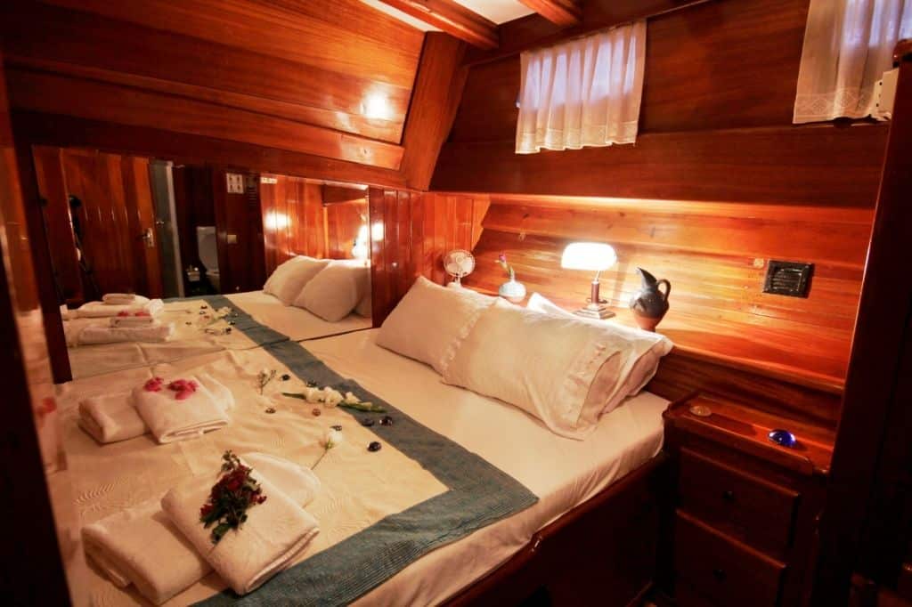 Up to 14 Guest; 2 Double, 3 Triple, 2 Twin Cabins, A/C, wardrobe, shower box and home type toilets in all the cabins, Seperate crew cabins. |