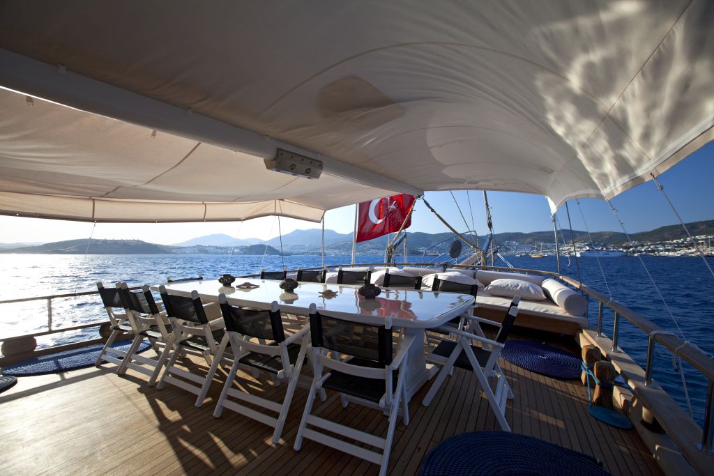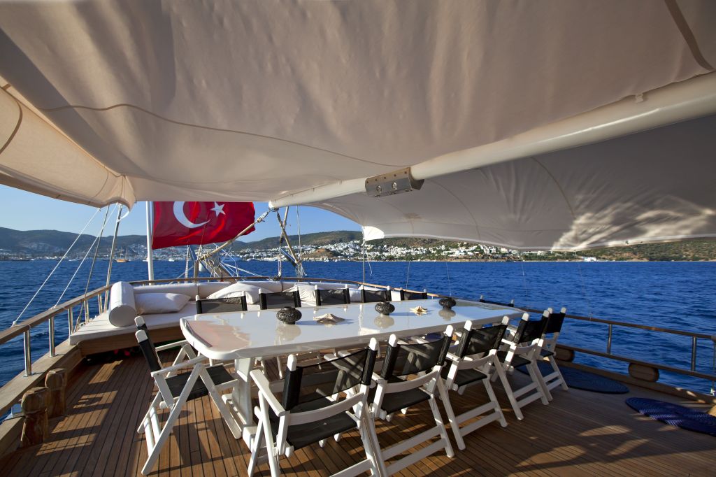 The Length of our 8 cabins gulet is 32 meters and when the weather and sea conditions are suitable, our skipper will sail for you. In Private Gulet charter - You will notice the privilege of our boat, which offers quality and comfort together on the blue cruise, the service of our crew during and after the tour. Our gulet is waiting for you to serve with her 8 cabins between April and November.