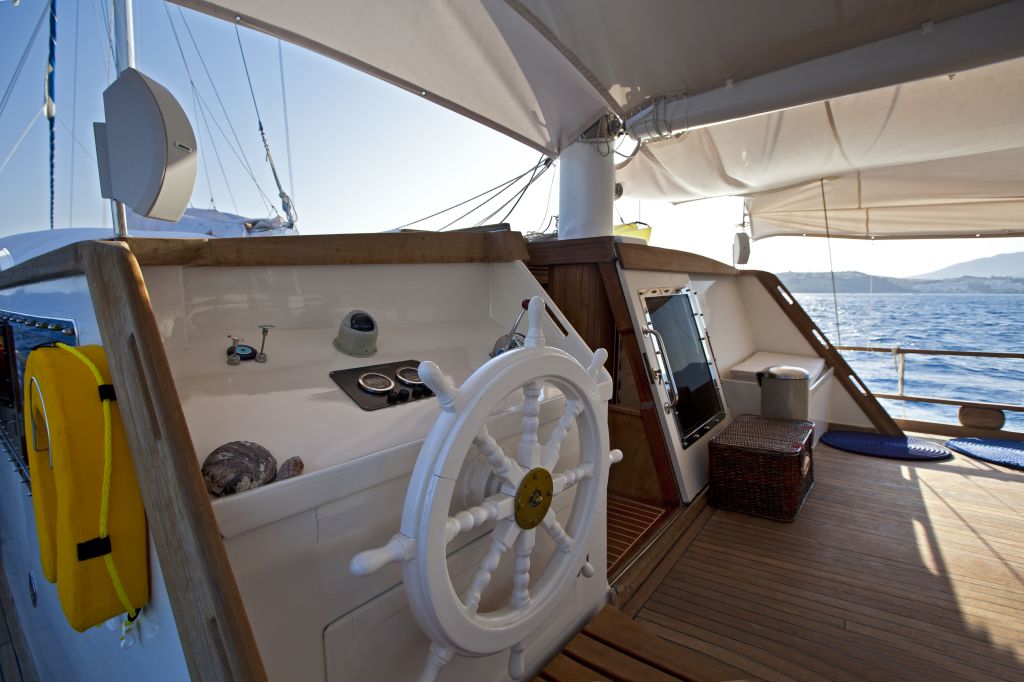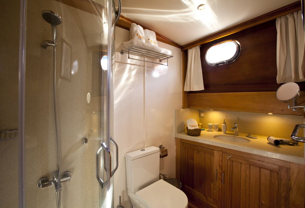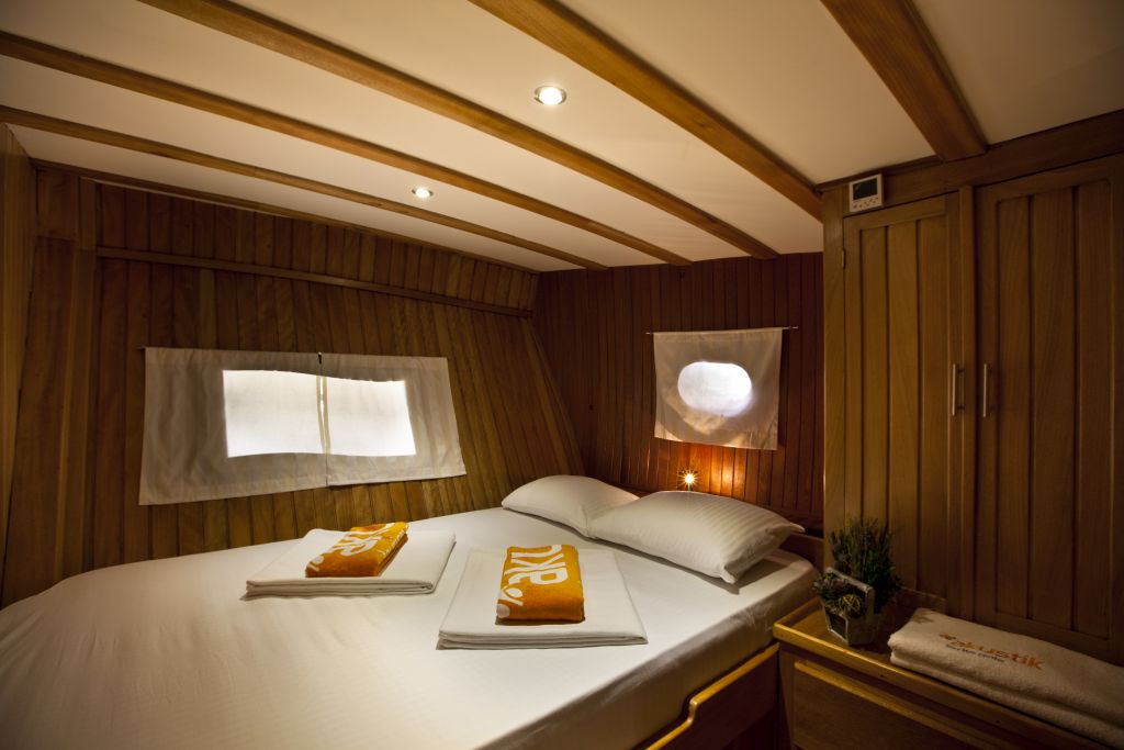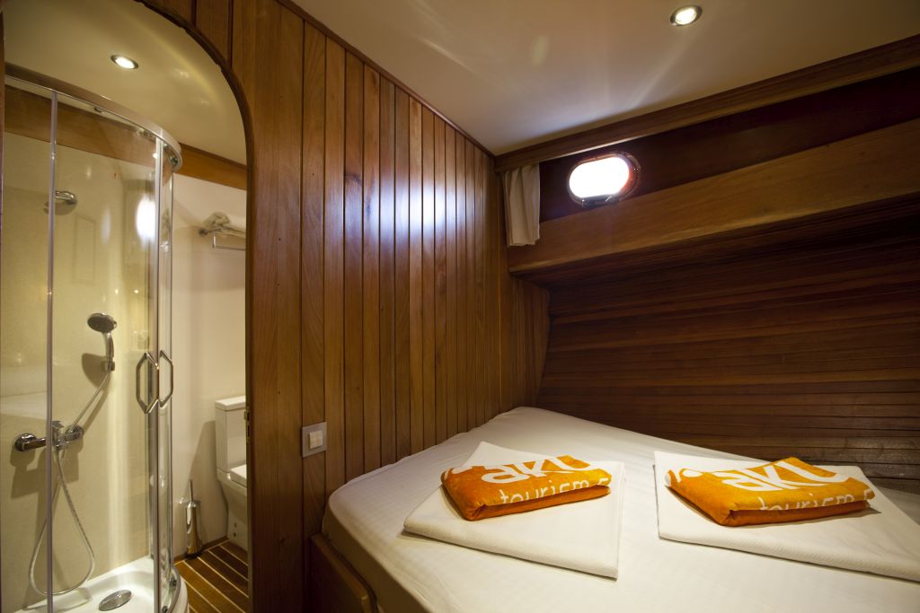 Our 8 cabin gulet, which was revised in 2019, is equipped with a capacity of 16 passengers for your blue cruise tours from Bodrum, Gocek, Marmaris and Fethiye, considering every detail you may need. In the spacious and comfortable living spaces of our gulet, we are able to accommodate your crowded groups of up to 16 people in 8 cabins. On our boat, which can serve 16 people in Turkish territorial waters, we provide 100% guest satisfaction-oriented service with our professional crew of 4 people, each of whom is experienced and friendly in their fields.