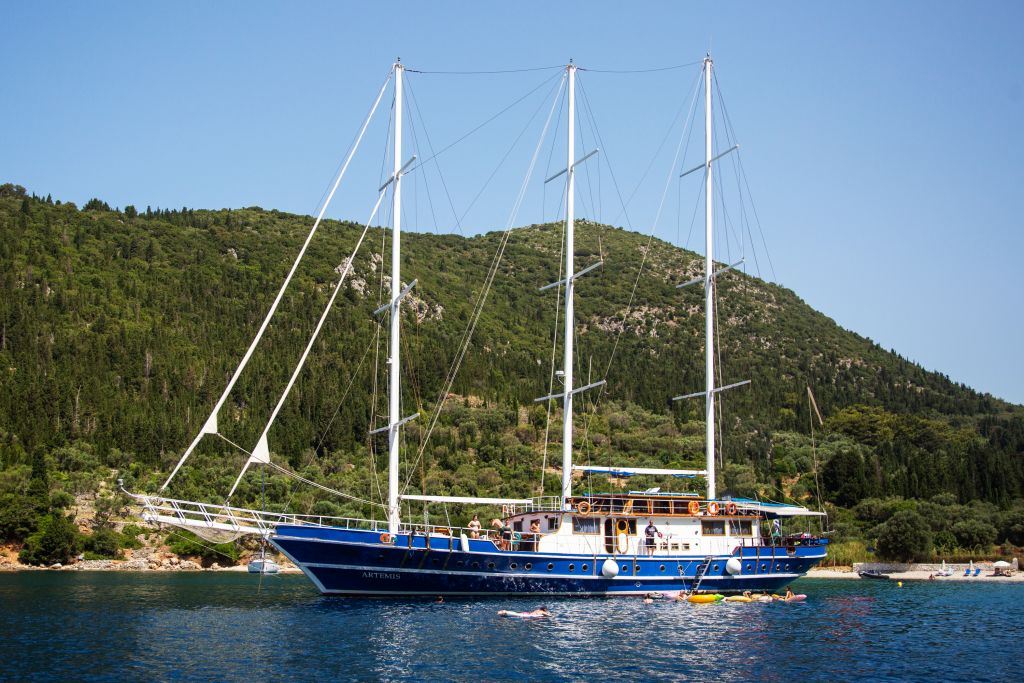 unwinding and the friendly atmosphere of a small ship cruise. The gulet Artemis - our beautiful motorised ocean vessel that can accommodate up to 46 passengers with 16 cabins -