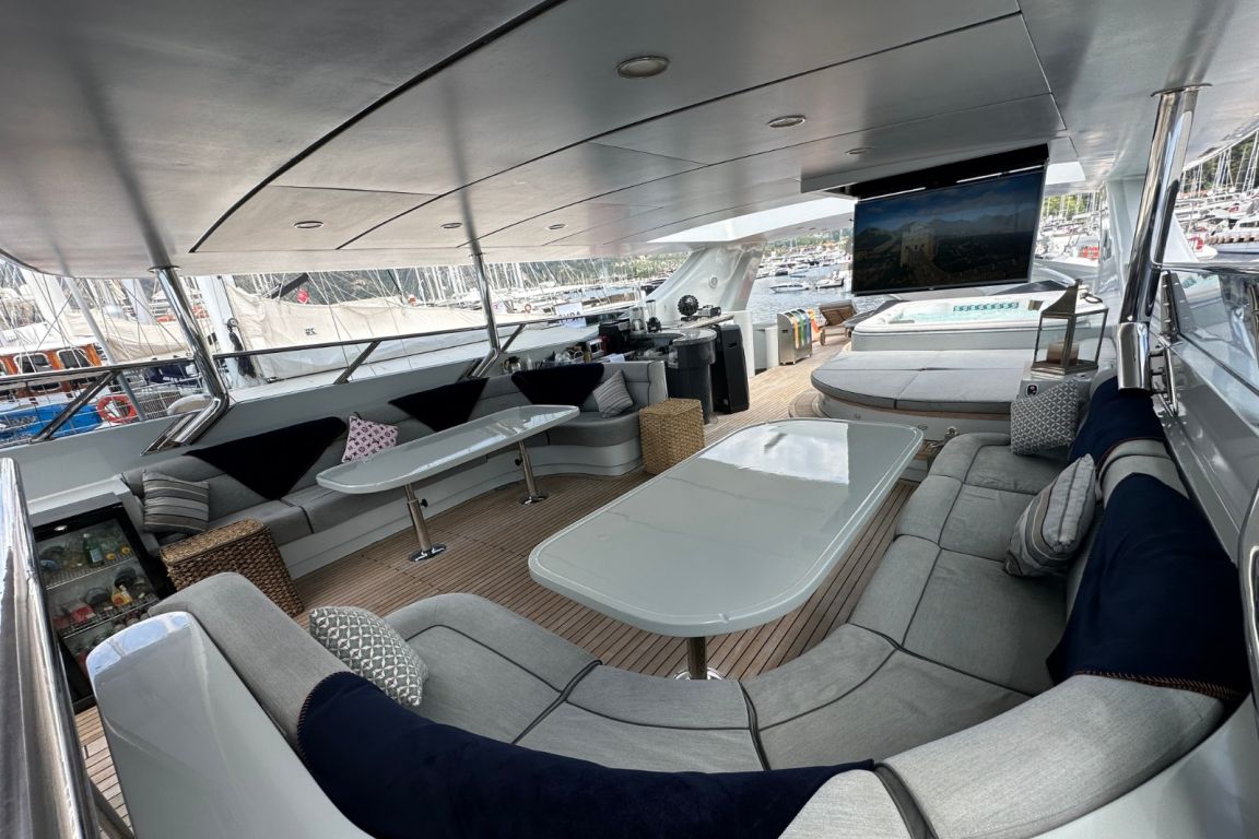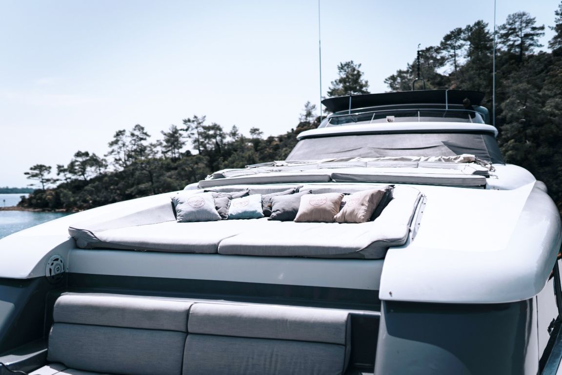 | ONBOARD AREAS; Saloon (Main Deck), The elegant main saloon features comfortable leather sofas with under-seat cooling systems, a dining table, air conditioning and RGB ambient lighting. Entertainment options include television, Apple TV, internet access, cinema sound system and two 360 rotating TVs. The saloon also includes an automatic curtain system for maximum comfort and privacy. Flybridge; The spacious flybridge offers a large sunbathing area, BBQ area, television, Apple TV, internet access and Wi-Fi. Guests can relax and enjoy the open sea views while listening to music through the onboard sound system and enjoying the RGB ambient lighting in the evenings. TENDERS & WATER TOYS; Tender: Zodiac Medline 6.00 - 115 HP, Water Ski, Wakeboard, Ringo (Towable Tube), Paddle Board, Fishing Equipment, Canoes, Banana Boat |